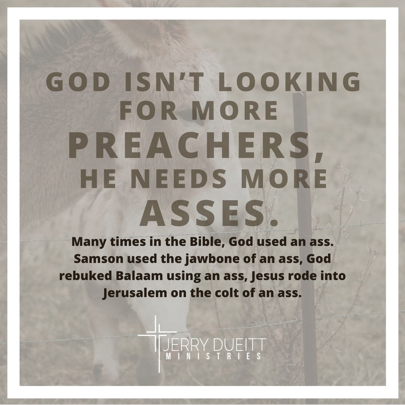 God isn’t looking for more preachers, He needs more asses. Many times in the Bible, God used an ass. Samson used the jawbone of an ass, God rebuked Balaam using an ass, Jesus rode into Jerusalem on the colt of an ass. This message was preached by Virgil Johnson to a large group of pastors at the World Missionary Conference in Denver, Colorado. This message also features his wife, Melonie Johnson, singing at the conference.